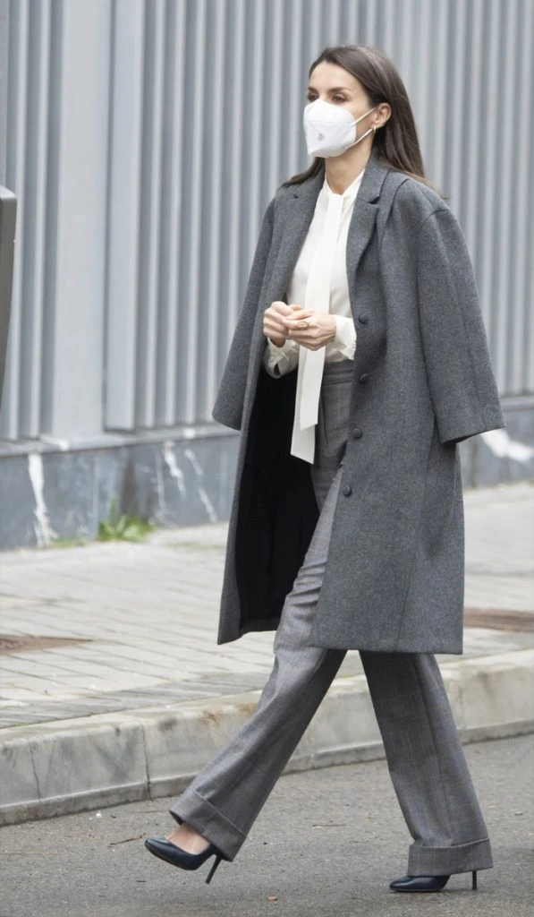 Una vez más la reina de España adoptó un look sobrio y sencillo donde predomina el color gris.