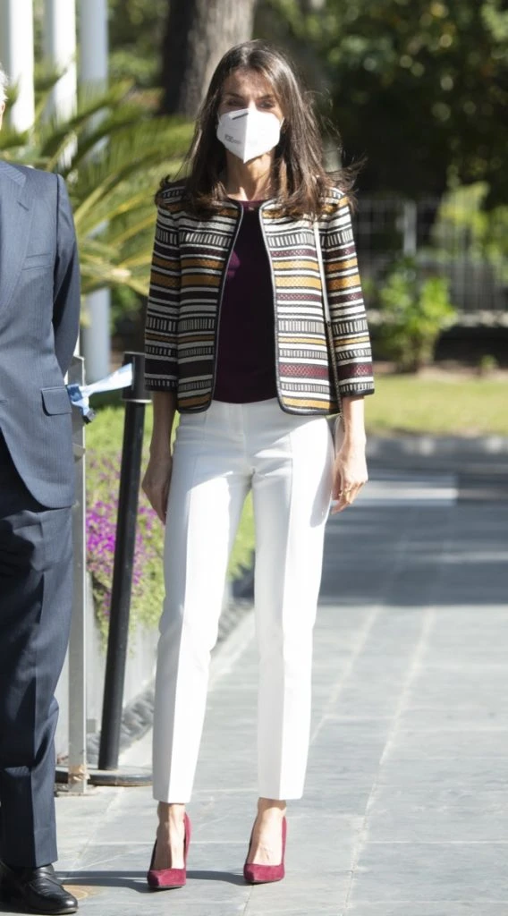 Para esta ocasión, la reina de España eligió llevar su chaqueta preferida de la etiqueta de Uterqüe que estrenó en el año 2015.