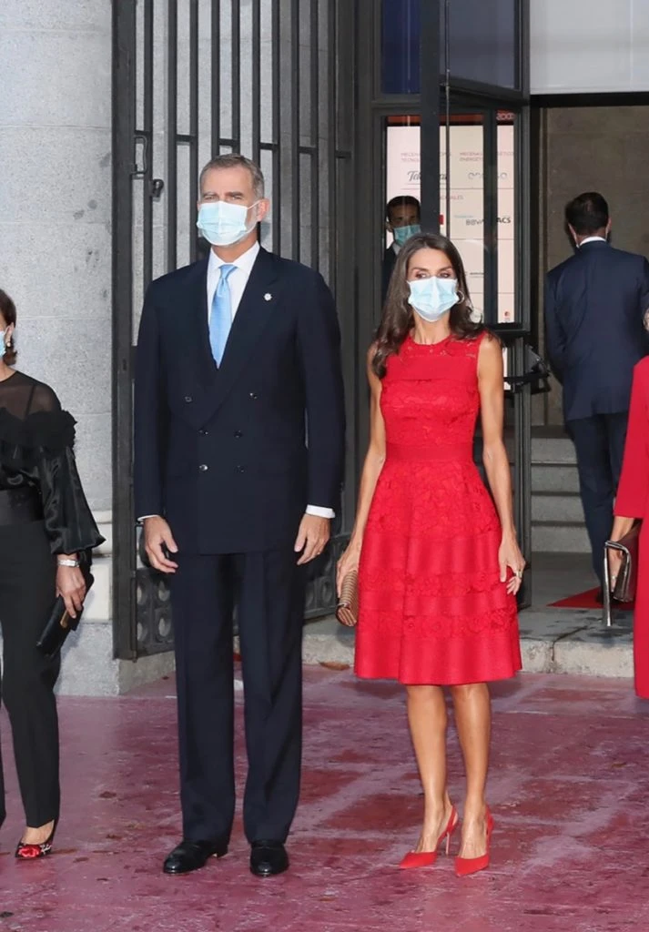 La reina de España eligió para este gran evento llevar su vestido favorito en rojo, su color fetiche, de la firma Carolina Herrera.