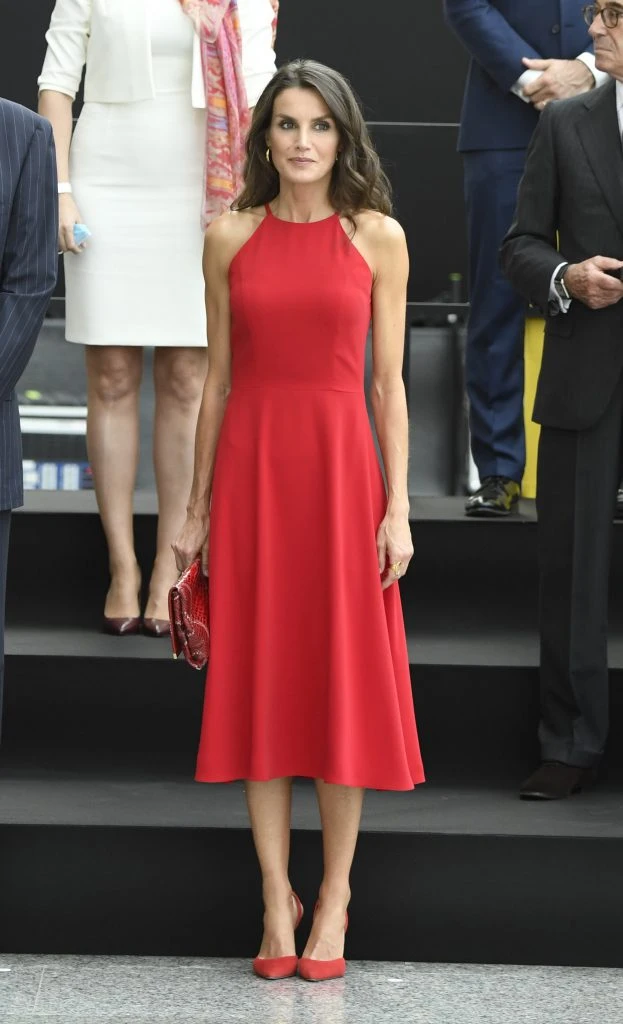 Con mucha elegancia y sensualidad, Letizia Ortiz eligió vestirse con un total look de su color más fetiche, el rojo.