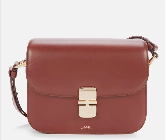 El modelo Grace de APC es una cartera confeccionado en suave cuero vacuno, y en particular este modelo presenta una solapa frontal con cierre de hebilla dorada, una correa ajustable para el hombro y 3 compartimentos.