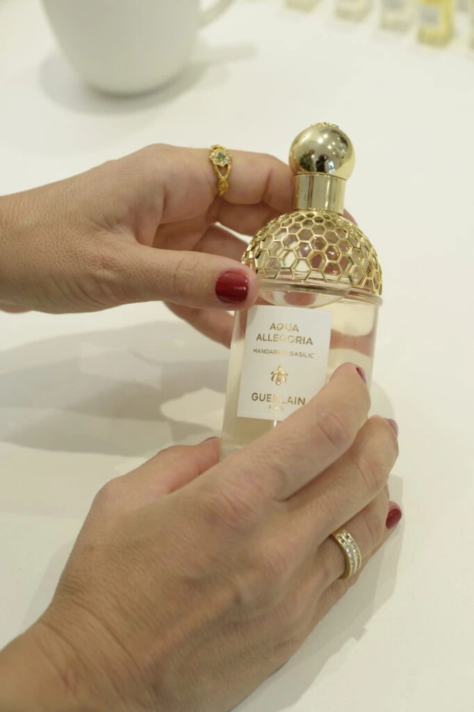 "Me encanta la linea Acqua Allegoria porque es súper fresca. Tengo varios, pero ahora estoy usando el "Mandarine basilic". En mi rutina de todos los días, esta fragancia me acompaña cada mañana y me lo pongo alrededor de todo el cuerpo y luego me pongo puntualmente otro perfume más amaderado atrás de las orejas y en las muñecas", cuenta Agus.