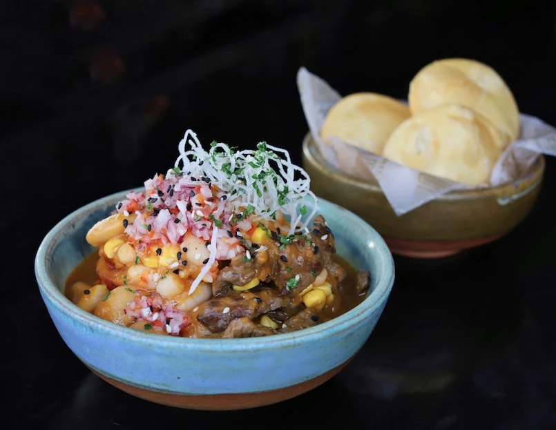 Paso 6: serví luego de 15' minutos de apagado el fuego. Acompañalo con pan bao frito, un chorro de la salsa pica pica y el gomasio