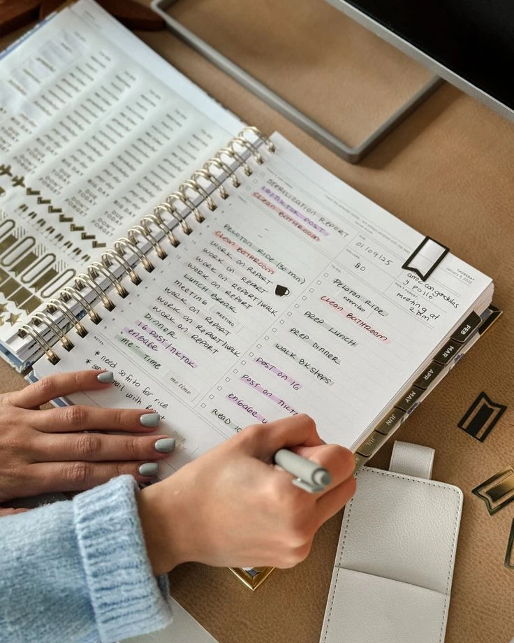 Llevar a cabo este hábito es tan fácil como agarrar un cuaderno y separar tu día a través de diferentes intervalos (por ejemplo, mañana, tarde y noche; o bien por medio de horarios específicos). Establecer lo que tenés pendiente para hacer en esos momentos, te va a ayudar a alcanzar tus objetivos de manera más eficiente.