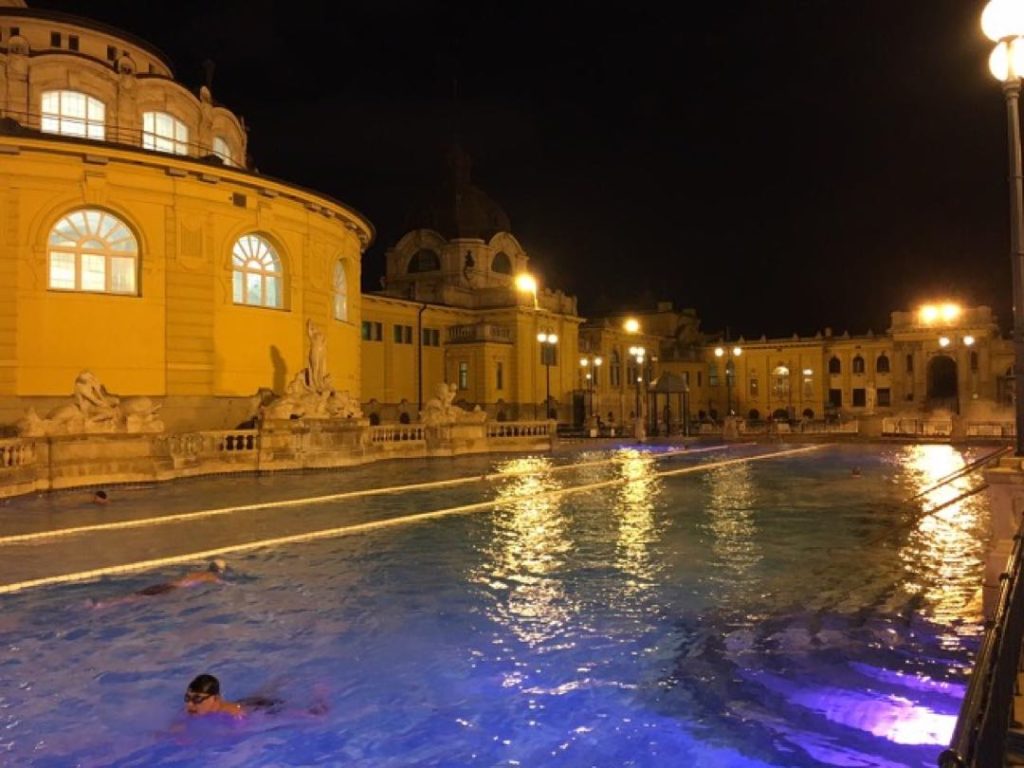 Oscurece muy temprano en Budapest; en enero, a las 5 de la tarde ya es noche cerrada. Y mientras disfrutábamos de las termas invernales de la ciudad, los vapores de las aguas de las piscinas se incorporaban lentamente a los copos de nieve que se desprendían del cielo. Antológico.
