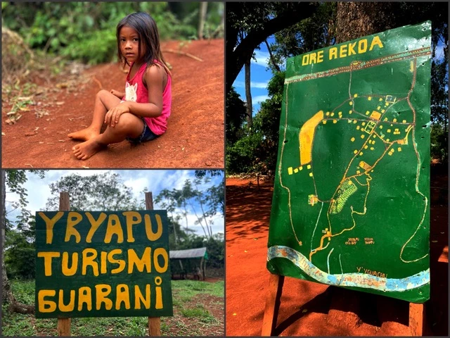 Ademas del paseo Full Moon, quisimos conocer una comunidad guaraní e indagar en su cultura, su historia y su presente. Tomamos un taxi desde el hotel para que nos llevara hasta Yriapú, nombre de la comunidad que significa “ruido de agua”, cuyas 275 hectáreas son propiedad de ellos y donde Juan, el guía nativo es bilingüe.