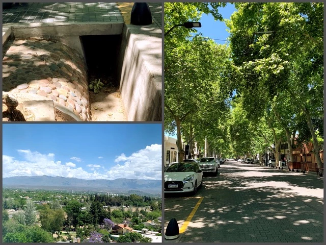 Me encontré con una ciudad orgullosa de sus veredas anchas y arbolados bulevares, de sus acequias callejeras (canales urbanos de riego artificial herencia de la tribu de los Huarpes). Las acequias mantienen protegida a la gente durante el día de las altas temperaturas del sol mendocino; forman un microclima refrescante con sus bendecidos y añosos árboles llenos de vida.