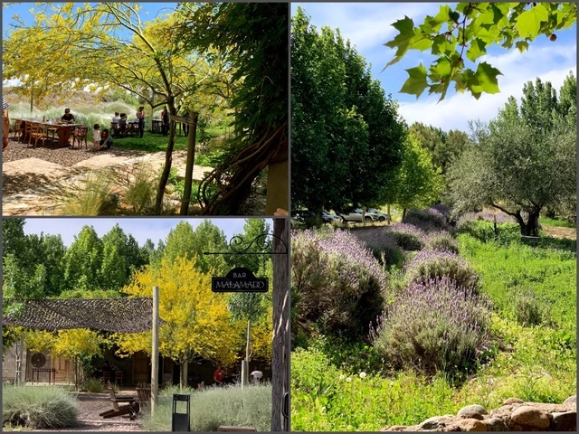 Otro día almorzamos con amigos en un sitio de viñedos y olivos; allí conocimos una planta que se usa para la fabricación de aceite. En el campo, cerca de los árboles, crecen distintas plantas aromáticas que hacen que respires los sabores de las diferentes clases de aceite con las que serán procesados.