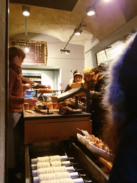 Volviendo a los trdelník, charlamos con nuestro guía sobre los ingredientes de estos bollos de canela y nos explicó que para hacerlos se necesita harina, manteca, azúcar, huevos, levadura fresca, leche, una pizca de sal y canela.