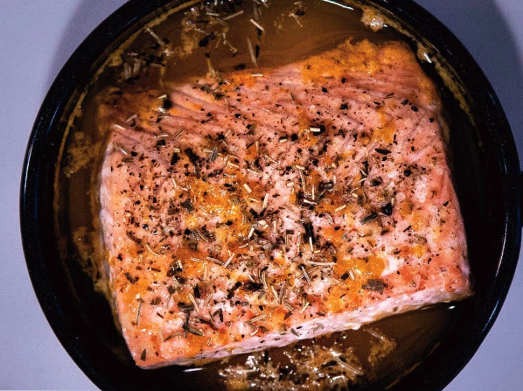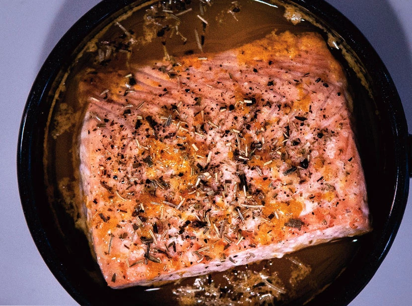 También, una linda opción es cocinar el salmón entero y colocarlo en una placa para que se caranchee en la mesa con algunas tostadas.