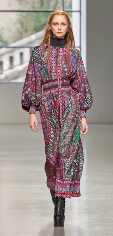 "Las telas se estampan de manera muy artesanal. Primero se dibujan a mano y luego se transfieren a la seda creando piezas súper glamorosas y únicas".