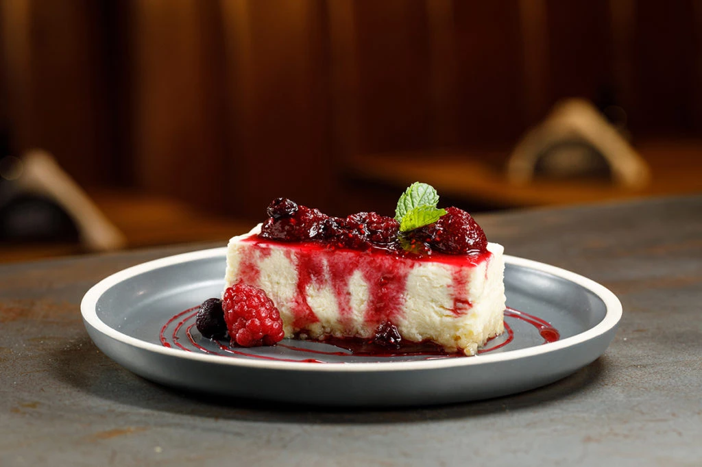 Opciones de cheese cake: En su carta se destacan suculentos postres entre los cuales la clásica cheese cake de frutos rojos se impone. Con un toque innovador, su sabor se destaca por un gustoso queso mascarpone 100% italiano. Tiene base de galletitas dulces de vainilla y viene coronada con salsa y frutos rojos frescos. Se sirve en formato individual y viene en una original presentación circular.