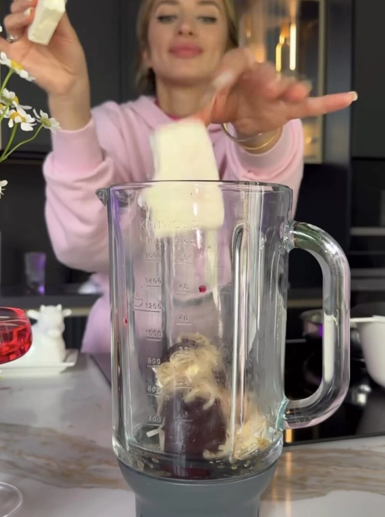 Empezamos salteando la cebolla y el ajo en la manteca hasta que quede dorado. En una licuadora ponemos las remolachas ya hervidas, con la mezcla que salteamos previamente y el queso crema. Una vez que logramos una salsa rosa, estamos listos para agregar los fideos a hervir. Ponemos en una sartén la salsa con unas cucharadas del agua de la pasta, agregamos los fideos y mezclamos. Una vez listo emplatamos. Es opcional agregar queso rayado. ¡Los fideos barbiecore están listos!