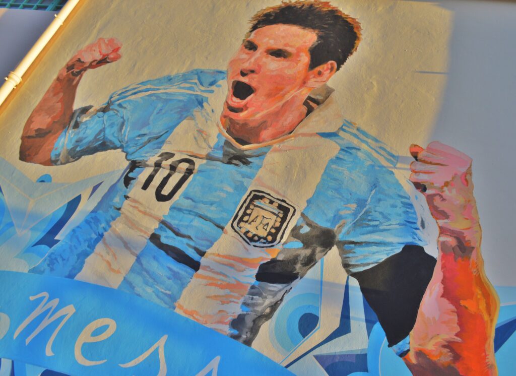 Descripción del mural: "Con los pies en la tierra, la mirada en algo más grande y el corazón albiceleste" así describe Lisandro Urteaga, la obra que vive en la casa de la infancia de Lionel, la cual fue realizada junto a Marlene Zuriaga, en mural y diseño. Tiene más de 70 m2 y conmemora la Copa América obtenida por Argentina en el 2022.