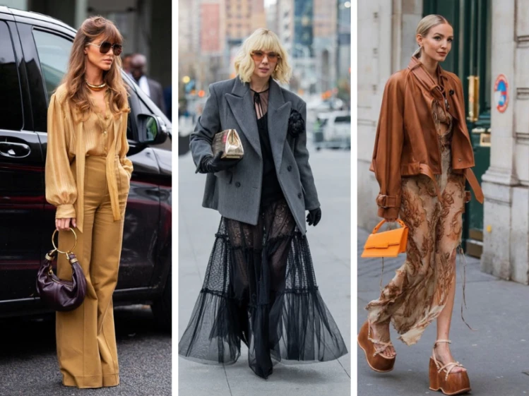 - “Faldas translúcidas con calzas o pantalones al cuerpo: una forma de jugar con capas sin perder abrigo.”