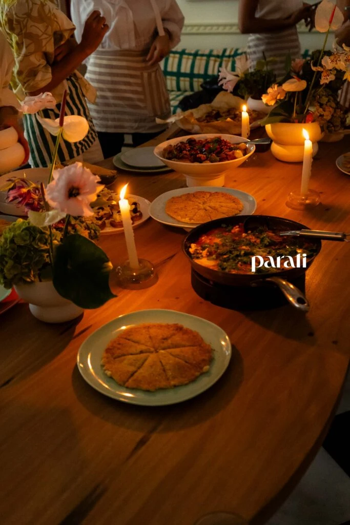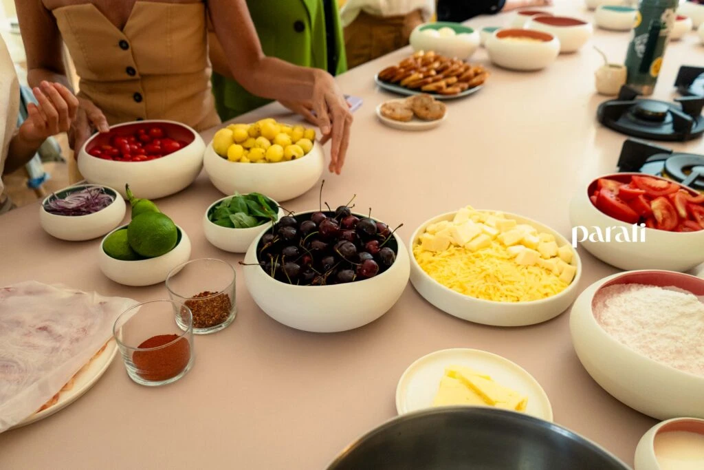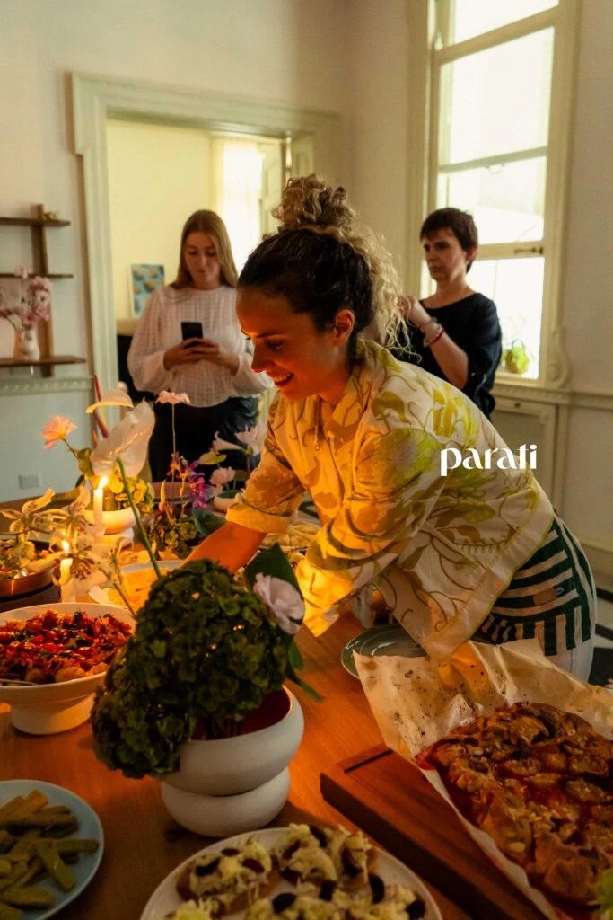 El evento, guíado por Karen Vainberg acompañada de su hermano Leandro, los directores de Volf, transcurrió en la cocina del lugar decorada con sus paredes amarillas características y con una gran biblioteca de fondo pintada del mismo tono. La misma exhibe la vajilla exótica de Volf, libros y utensillos en una paleta de colores pasteles.