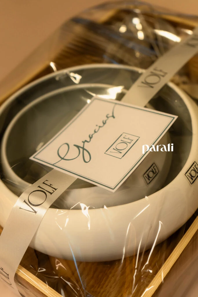 Al adentrarse en la experiencia era difícil no perderse en los colores y la calidad de la vajilla de Volf que acompañaba perfectamente la esencia del momento. Esta empresa familiar tiene una historia que tuvo origen en un pequeño pueblo de Polonia, en manos del abuelo de Fredy Vainberg, padre de Karen y Leandro, quien hoy preside la empresa.