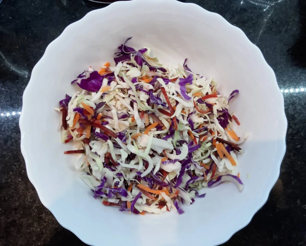 Esa bandejita cerrada al vacío que ofrecen muchas verdulerías con zanahoria, repollo colorado y blanco cortada en juliana, puede ser de gran ayuda cuando no tenés tiempo para preparar con qué acompañar los platos. Se llama coleslaw y podés prepararla de manera fácil sumándole este riquísimo y sencillo aderezo. Antes de nada, te sugiero lavar estos vegetales (si tenés agua de filtro, mejor) y secalas con servilleta de papel.