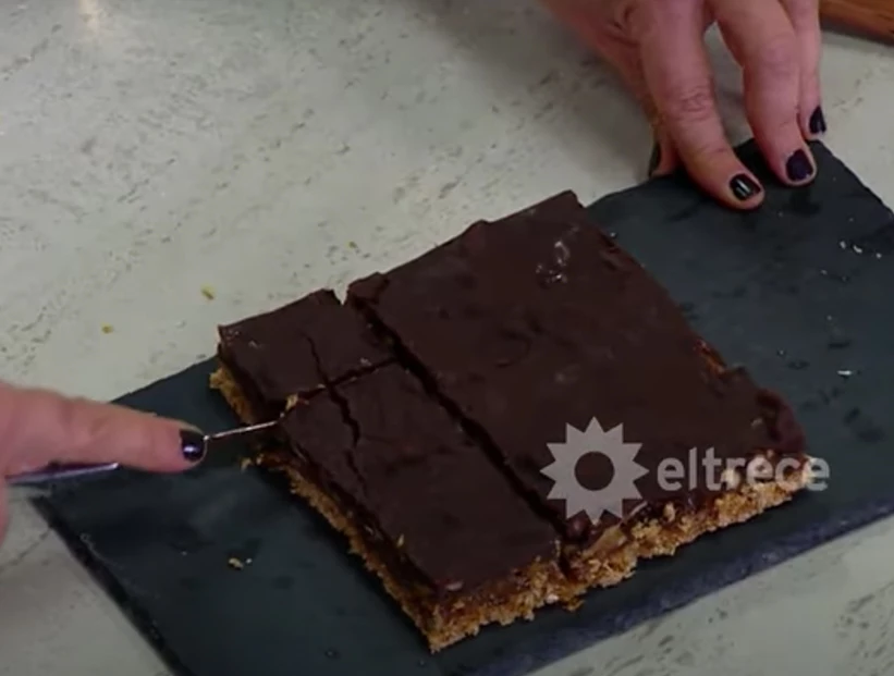 Para cerrar, aclaró que es clave colocar dulce de leche en la superficie: ''Una vez que ese paso está listo, si desean le pueden poner nueces arriba. Después, agregamos chocolate y va un rato al frío. Es muy importante mojar con agua caliente''.