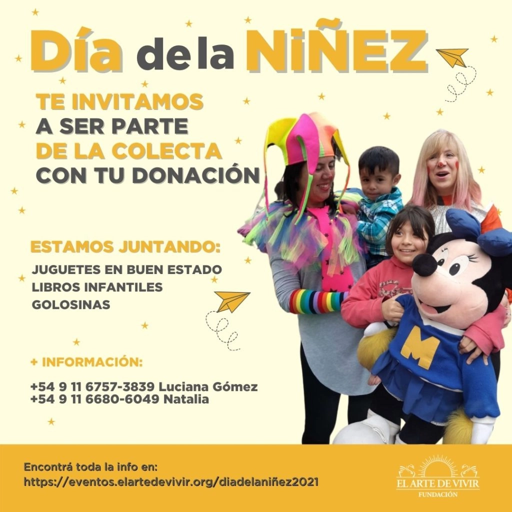 Y ahora, para el Día de la Niñez desde El Arte de Vivir están juntado juguetes en buen estado, libros infantiles y golosinas.