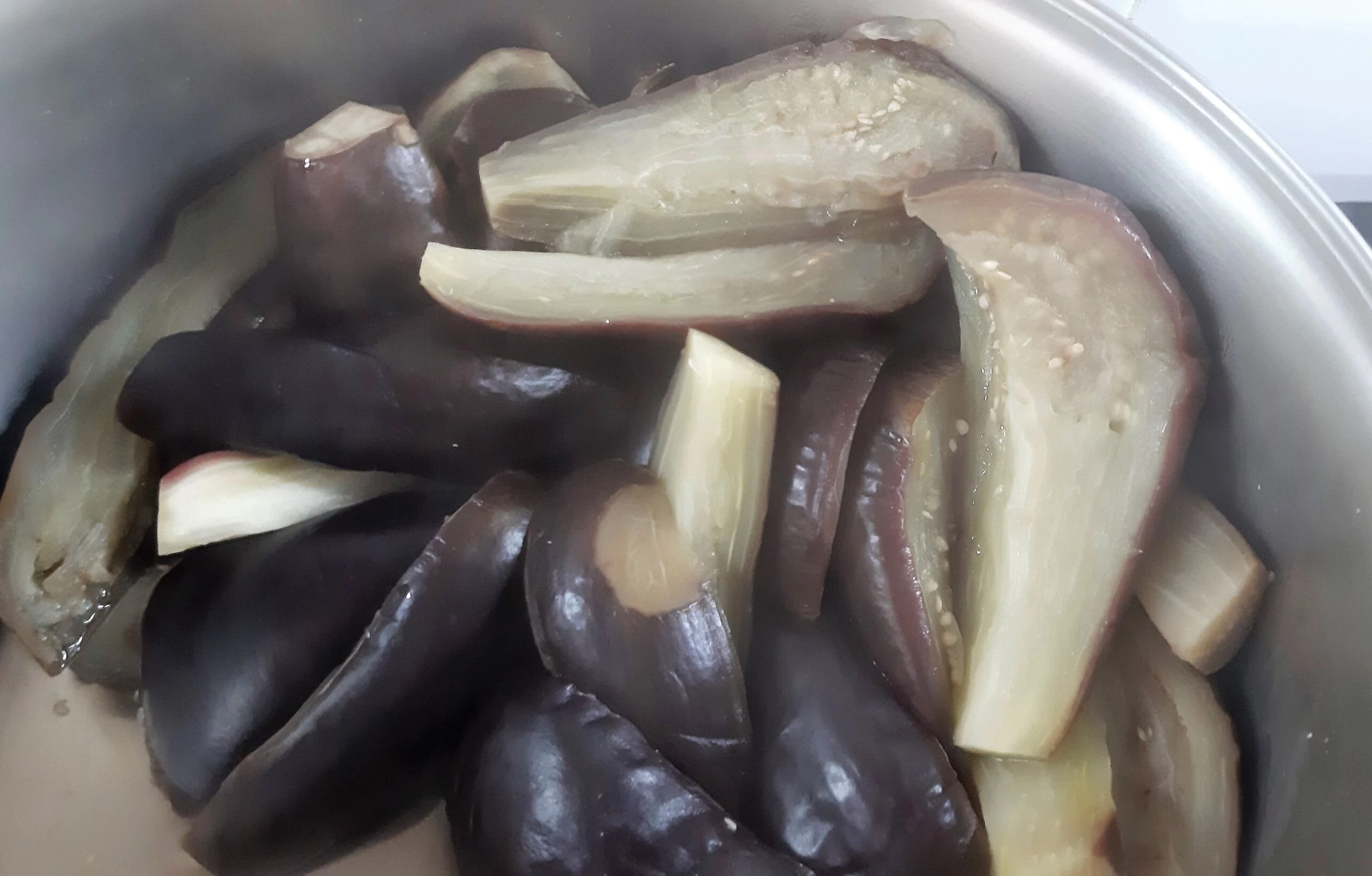 - Rebaná las berenjenas lavadas en rodajas