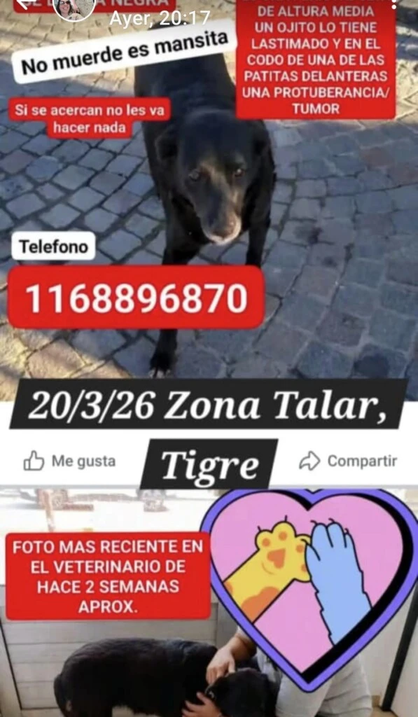Compartí fotos recientes en grupos de Facebook de tu barrio o localidad. También podés usar apps como Instagram o Facebook para difundir. - Contactá refugios y veterinarias