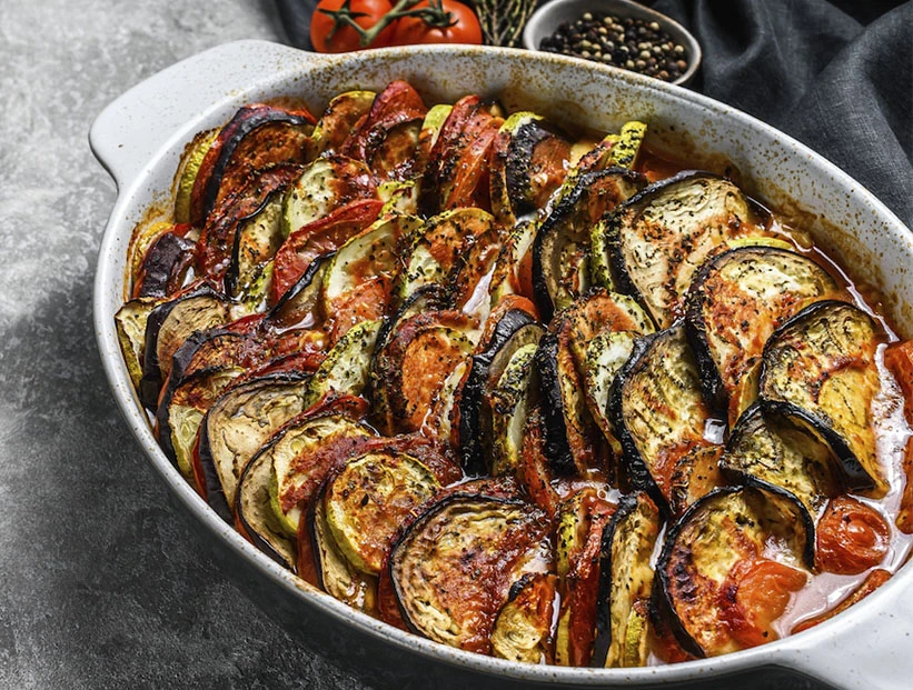 - Paso 5: Mientras hacer el ligue con huevos, sal, pimienta y crema. Volcar sobre la tarta pre cocida y encima el salteado de morrón. Luego armar el espiral de ratatouille y cocinar en un horno medio.