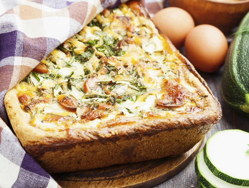 Quiche de berenjenas, puerro y cebolla de verdeo