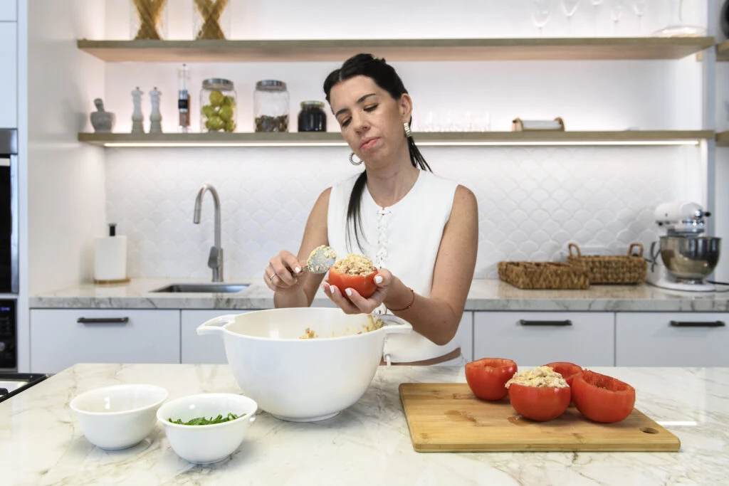 En esta edición de Para Ti Cocina, Jordi Klad (@jordanaklad) nos invita a preparar una receta típica de la mesa argentina en época de fiestas: tomates rellenos. Desde Mesón, espacio en donde graba las recetas para sus redes, dicta talleres y oficia de anfitriona para eventos sociales y corporativos, nos comparte su modo de hacer esta preparación con un toque distinto a la tradicional.
