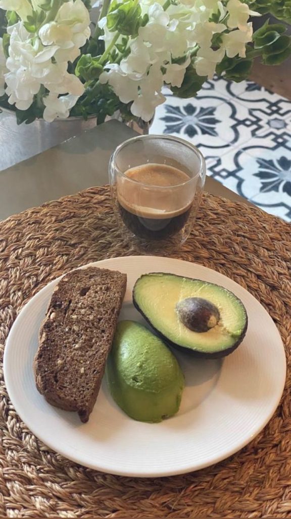Además de ser fanática del jugo detox o verde, Juliana siempre suma la palta a sus desayunos. Es algo así como el ingrediente estrella de su primera comida.