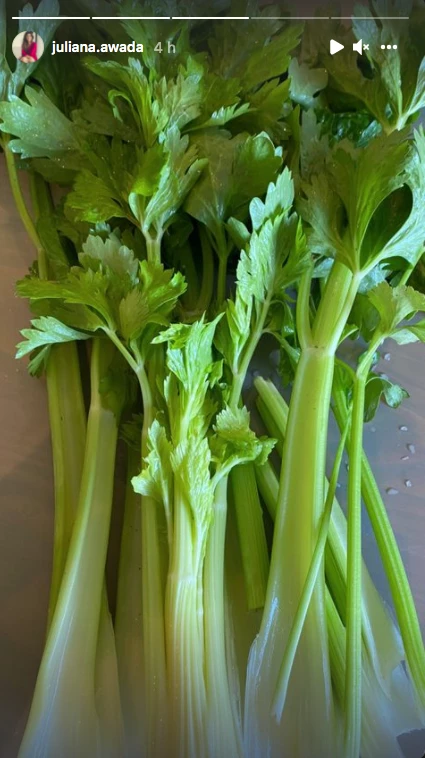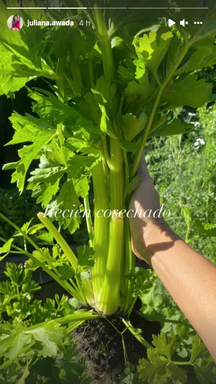 Activa nuevamente en redes sociales, Juliana Awada comenzó el fin de semana con uno de sus ya clásico desayunos, el jugo de apio recién cosechado de su huerta. La exprimera dama adora beber esta preparación natural en ayunas, y aprovecha los vegetales orgánicos de su huerta para prepararla.