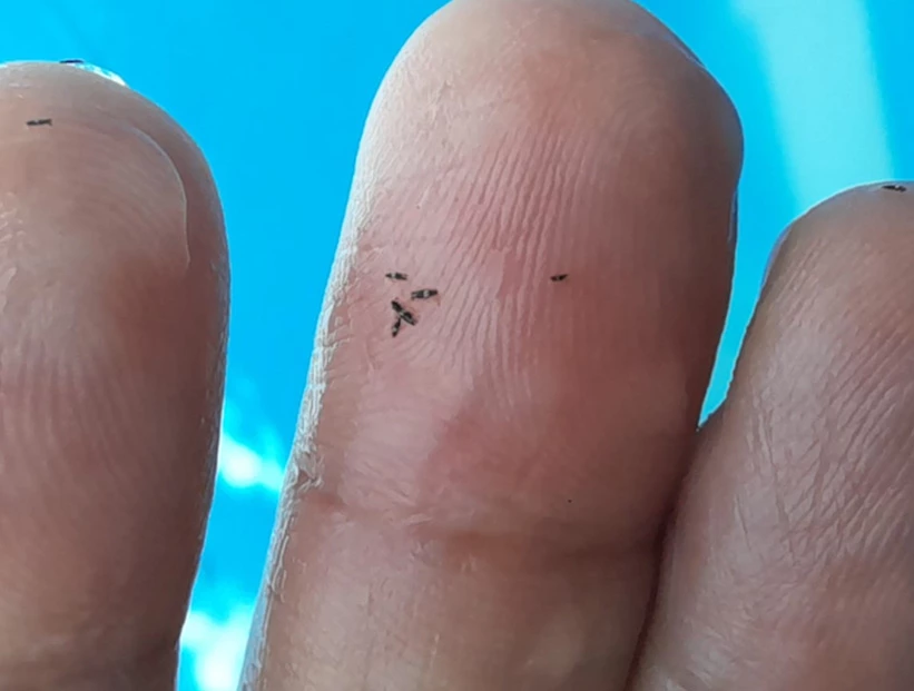 Es el tema recurrente en los últimos días. Una plaga de insectos ínfimos negros y mínimos invadieron Buenos Aires y pican mucho. Se ven fácilmente en las hojas de las plantas, en la superficie del agua de piletas y en la ropa recién lavada y colgada en la soga. Muchos creyeron que se trataba de piojillos de paloma o ácaros de aves pero se llaman trips y su aparición está relacionada con la ola de calor.