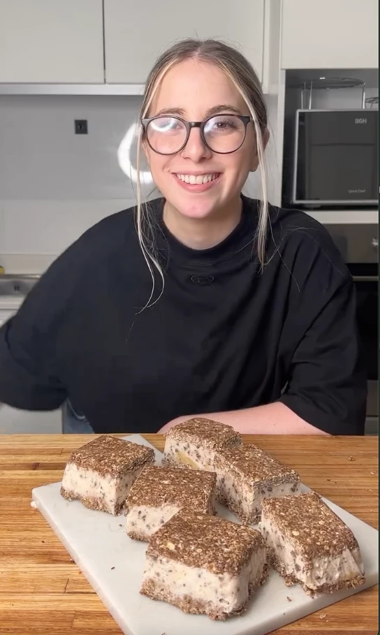 - Paso 3: Para el armado, poné en una budinera una base de papel manteca y hacer una capa de la preparación de la avena, en el medio una porción generosa de la mezcla del yogurt y banana y si queres sumale mantequilla de mani. Llevá al freezer por varias horas hasta que la preparación este solidificada.