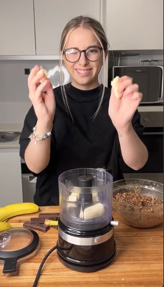 - Paso 2: Luego para el relleno, en una procesadora poner las bananas y el yogurt natural y agregra chocolate picado .