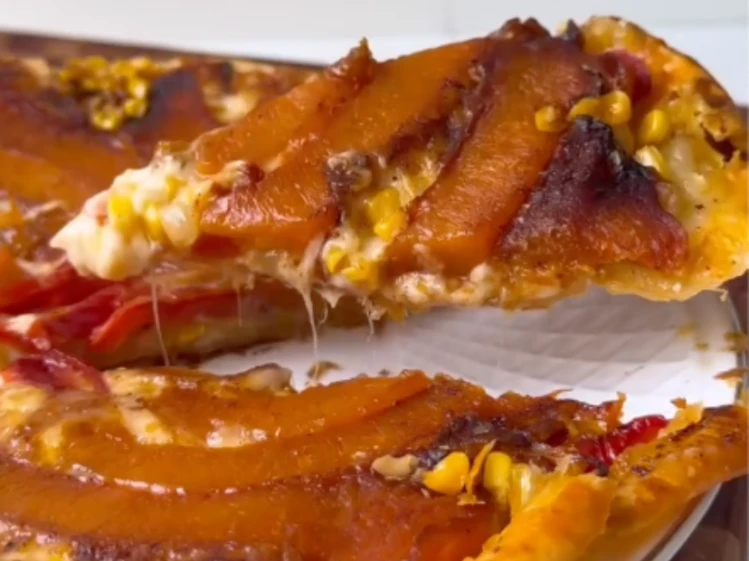 1- En una pizzera rociada con aceite, disponé los trozos de calabaza. Tiene que estar pelada y cortada en gajos. Acomodalos como armando una flor. Condimentalos y hornealos entre 15 y 20 minutos.
