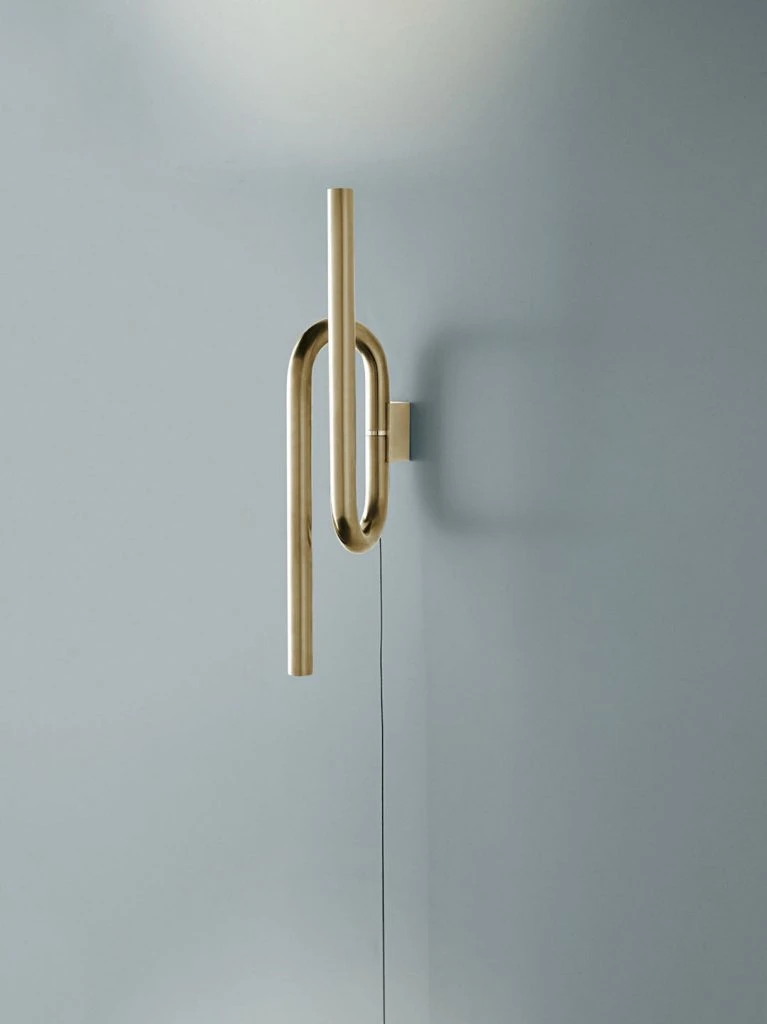 Es un diseño que se lee de una manera simple, usando esta suerte de línea que nace desde el piso y se “enrosca” al elevarse. En su extremo se ubica la salida de luz de manera oculta, pero lo que la hace aún más interesante es la curva generada a mitad de camino y que sirve de agarre para poder manipularla.