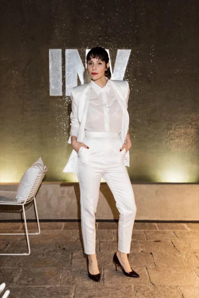 Ale Quevedo eligió smoking, el ítem de moda de red carpet y galas. En lugar del clásico negro, lo prefirió en un total look blanco. La camisa con transparencias, otra de la tendencias de esta primavera, deja traslucir el soutien de encaje. Acompañó el look con stilettos negros.