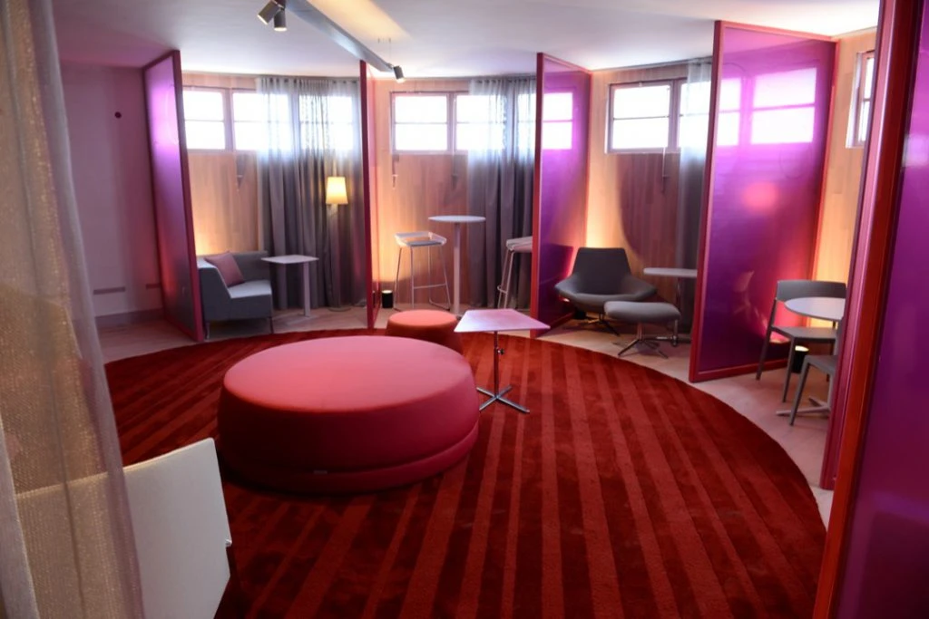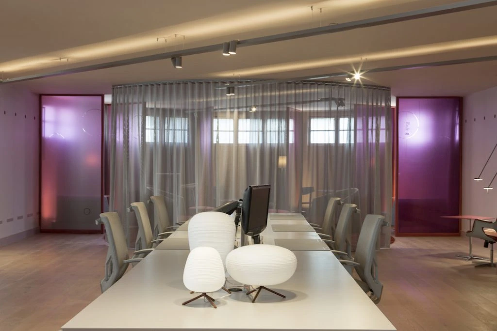 La tendencia al trabajo en espacios colaborativos desembarcó en Casa Foa con una propuesta diferente. Un ambiente invadido de rosas y fucsias (Rosa sedosa, Malva de invierno, Rosa Colonial y Rosa Capri, de Alba), rico en acrílicos y otras transparencias, marca el ritmo de los 160 m2 del espacio de coworking, equipado con muebles de Grupo (a) 2. Una larga mesa central lo atraviesa como columna vertebral, acompañada por sillas de líneas vanguardistas y ergonométricas. Aprovechando las paredes curvas de la arquitectura, se generó un sector más privado protegido -acústica y visualmente- por unas cortinas especialmente diseñadas con la tela de polipropileno que se usa como malla de sillas y una mega alfombra circular a rayas (El Espartano). Una cocina comunitaria con mesada de Dekton (Canteras del Mundo) y bachas de Johnson Aceros, mesitas individuales con tapas asimétricas también en color rosa y sillas con cierta estética retro, le da un buen cierre. Luces puntuales y perfiles de leds (Atrim) acompañan el clima de este espacio de trabajo.