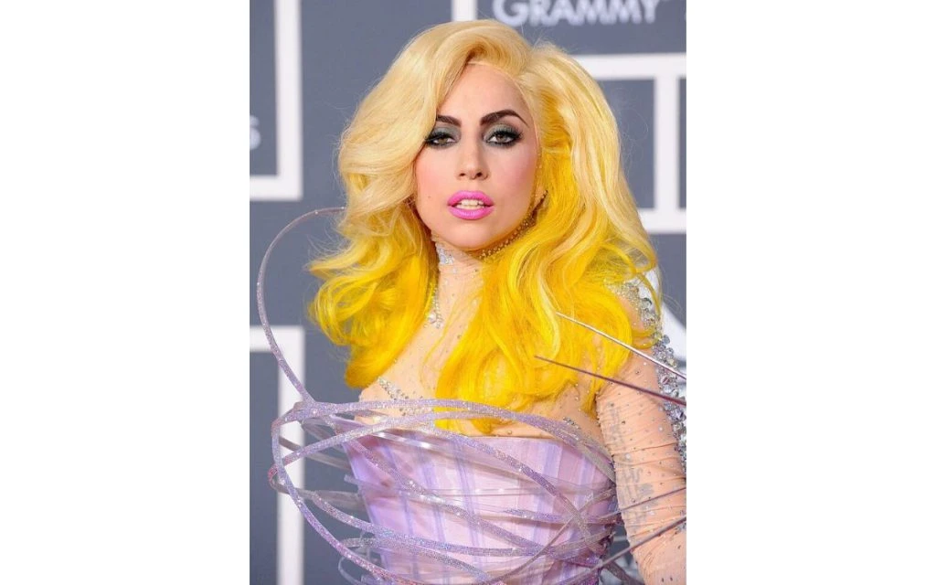En este caso Lady Gaga prefirió un rubio en las raíces pero acentuando el tono amarillo en los extremos. Este hairstyle fue considerado vibrante y único, también uno de sus mejores peinados durante el 2010.