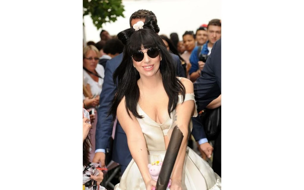 Este outfit de cuento ocurrió en la Semana de la moda Mercedes Benz hace 11 años, exactamente en el 2008. Con capucha roja y labial rosado, Gaga completa su look con un flequillo marcado y el pelo alisado, largo y de color platino.
