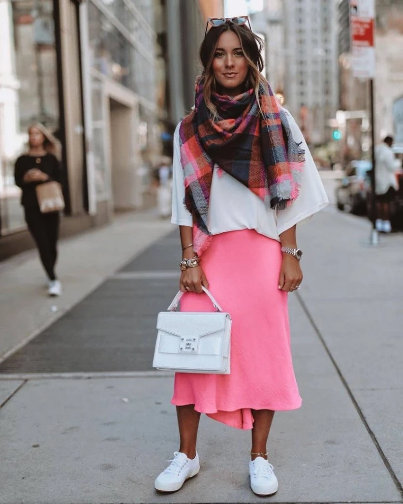 Las queridas zapatillas siguen vigentes. ¡Las amamos!. Esta temporada se llevan en color blanco, pero obviamente también son válidas cualquier par que tengas en tu casa. Quedan muy cancheras con cualquier look.