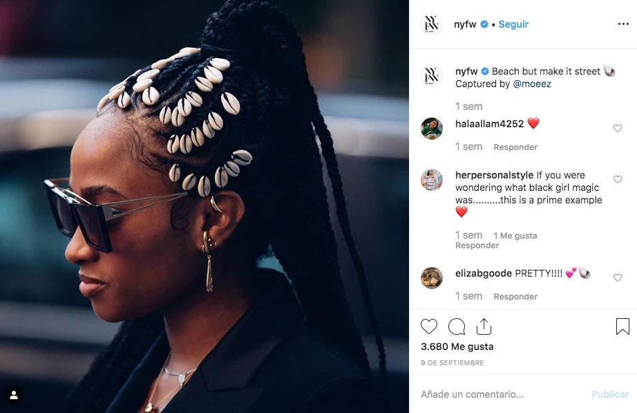 Playa pero hecha calle (o street style) dice junto a la foto de la invitada a FWNY. Sin duda las influencers tomaron nota y levantaron el pulgar para este revival de los caracoles.