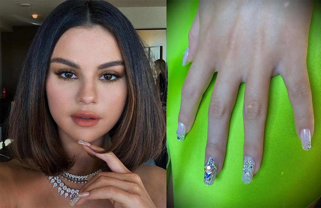 Selena Gomez estrenó cambio de look en los AMAs 2019: se cortó el pelo a lo bob y lo llevó alisado y con las puntas hacia adentro. Se hizo un smokey eyes en tonos terrosos y acompañó el beauty look con un nail art "joya" que le hizo Tom Bachik.
