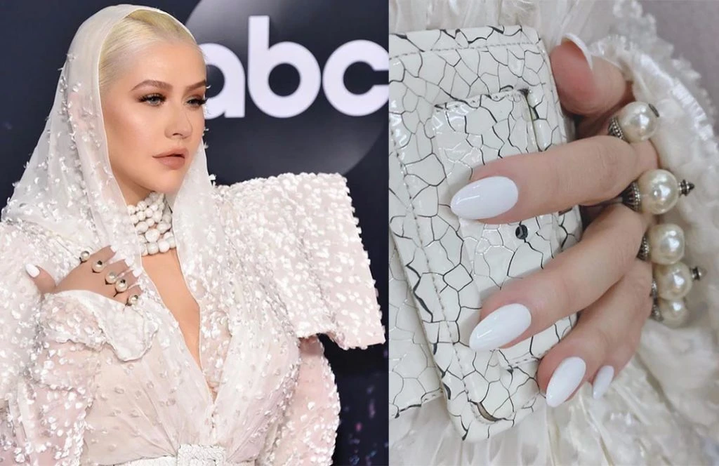 Christina Aguilera eligió el blanco para su look. Y acompañó pintando sus uñas también del mismo tono.