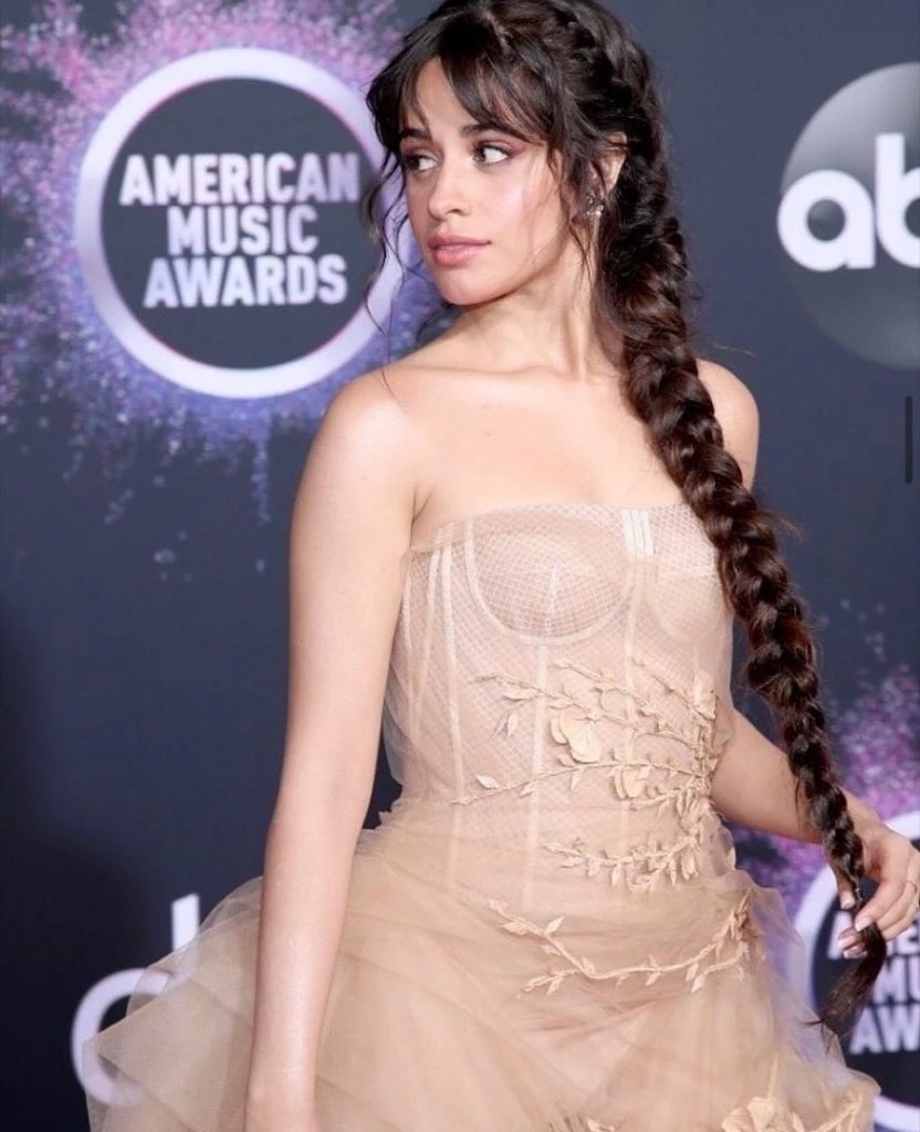 Camila Cabello apareció con una trenza larguísimo a lo Rapunzel: un peinado boho chic para acompañar el estilo de su look. Y en las manos se hizo francesitas, otra de las tendencias de esta temporada.