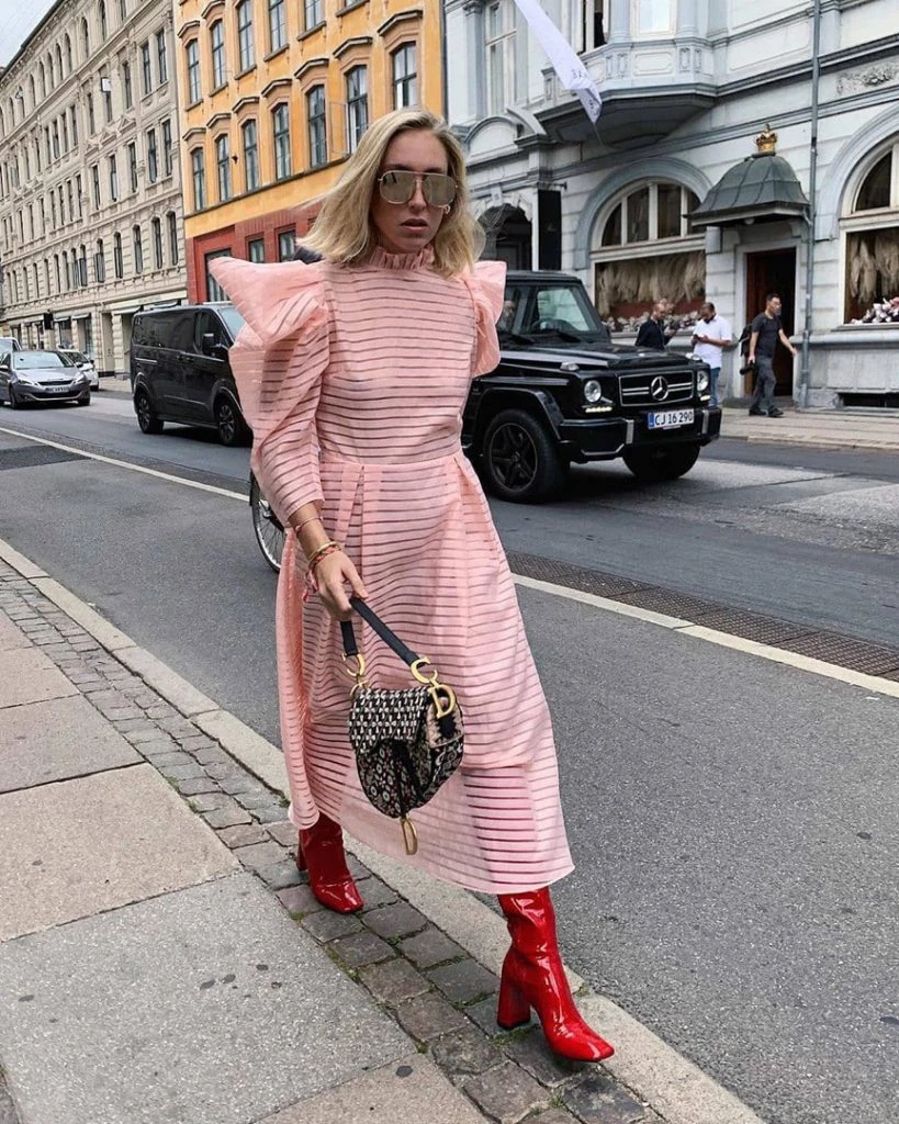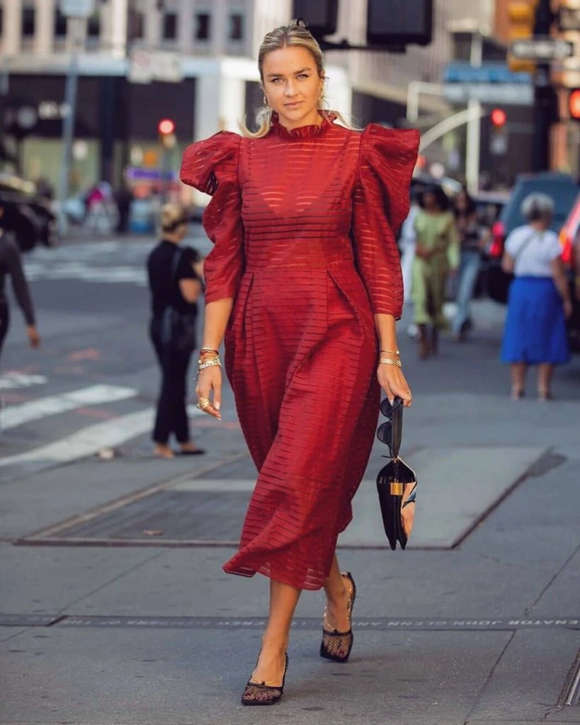 - Mangas protagonistas: Hombreras, mangas exageradas, hombros sobrecargados. Las mangas son las protagonistas del outfit. Es el revival de los años noventa. Tendrás que buscar en la baulera algún vestido que te haya quedado de aquella época.