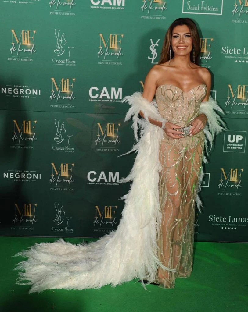 Valeria Mazza fue la gran anfitriona sobre la green carpet de la primera edición de los premios Martín Fierro de la Moda. La top model llegó con un vestido de Gino Bogani y joyas de Rubi Rubi.