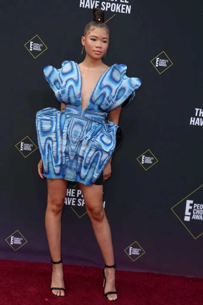 Storm Reid eligió un diseño especial de Iris Van Herpen. Con estampa efecto óptico, hombros destacados y construcción rígida, fue uno de los más llamativos de la noche.