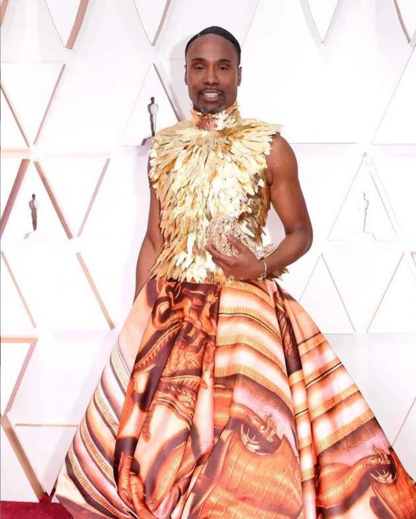 A un año de su elogiado smoking con falda, el actor la descosió en la alfombra roja de los Oscars con su look. Billy no decepciona.