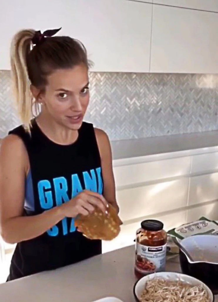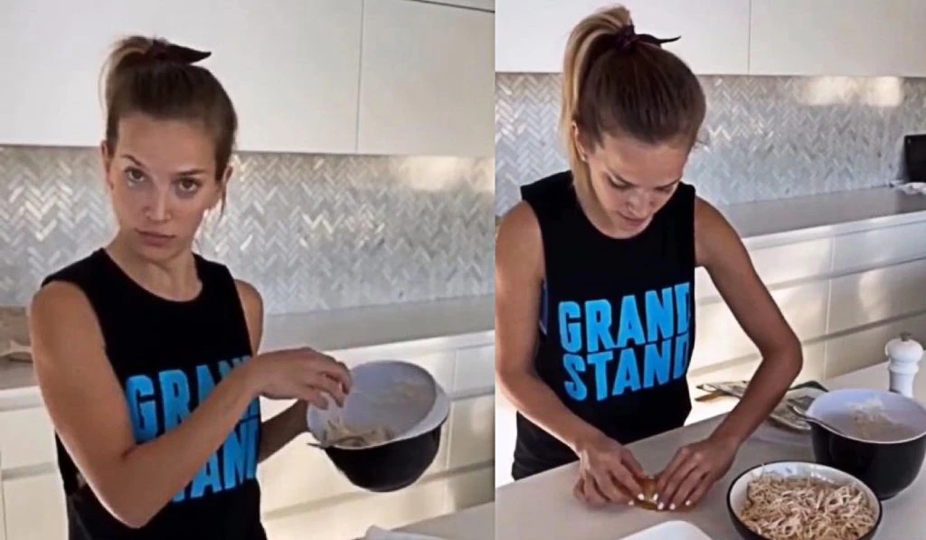 Desde su cocina, la actriz preparó su propio videito de cocina express. "Después hice el pollo, lo herví y lo desmenucé todo".